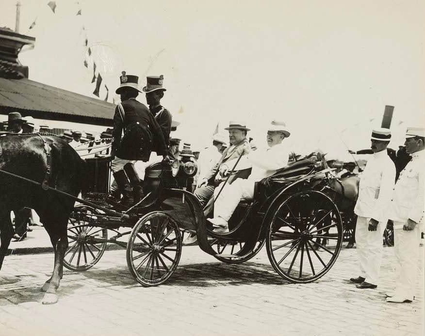 William Howard Taft welcomes Luke Edward Wright to the U.S. Territory of the Philippines and escorts him to his new office. Credit: picryl.com. Public domain.
